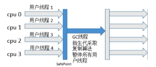 - 单线程收集,进行垃圾收集时,必须暂停所有工作线程