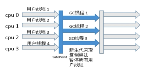 - 新生代收集器,可以认为是Serial收集器的多线程版本,在多核CPU环境下有着比Serial更好的表现