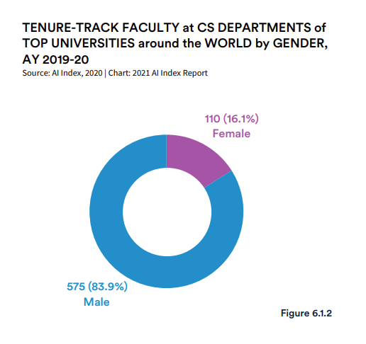 一项 AI 指数调查显示,在世界各地大学的计算机系中,女性教师仅占全部终身制教师的 16% 。