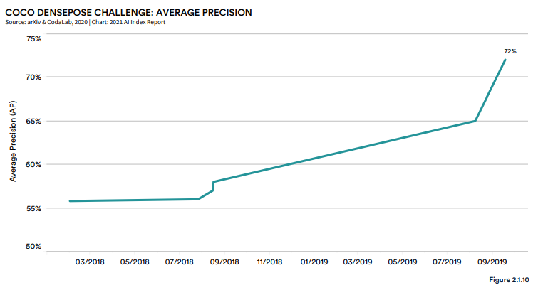 与此同时,企业正在投入越来越多的计算资源,比以往任何时候都以更快的速度训练计算机视觉系统。同时,用于已部署系统的技术(如用于分析视频静止帧的目标检测框架)正在迅速成熟,这表明将进一步部署 AI。