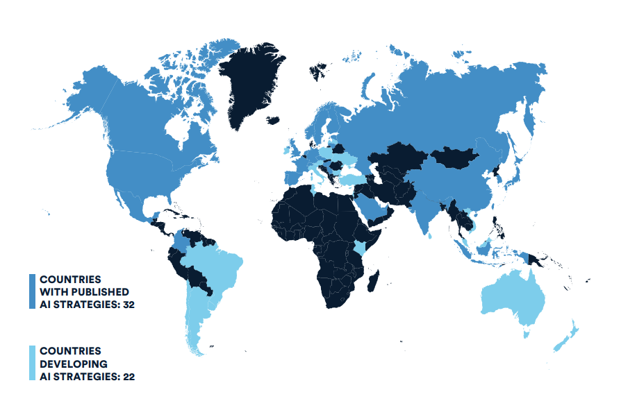 自加拿大 2017 年发布了全球第一个国家级人工智能战略以来,截至 2020 年 12 月,已有其他 30 多个国家和地区发布了类似文件。中国在 2017 年发布了《新一代人工智能发展规划》,这是世界上最全面的人工智能发展战略之一。