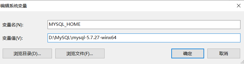 输入变量值:D:\MySQL\mysql-5.7.27-winx64