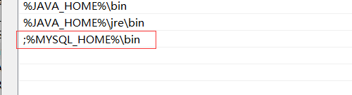 在变量值中添加变量值:;%MYSQL_HOME%\bin