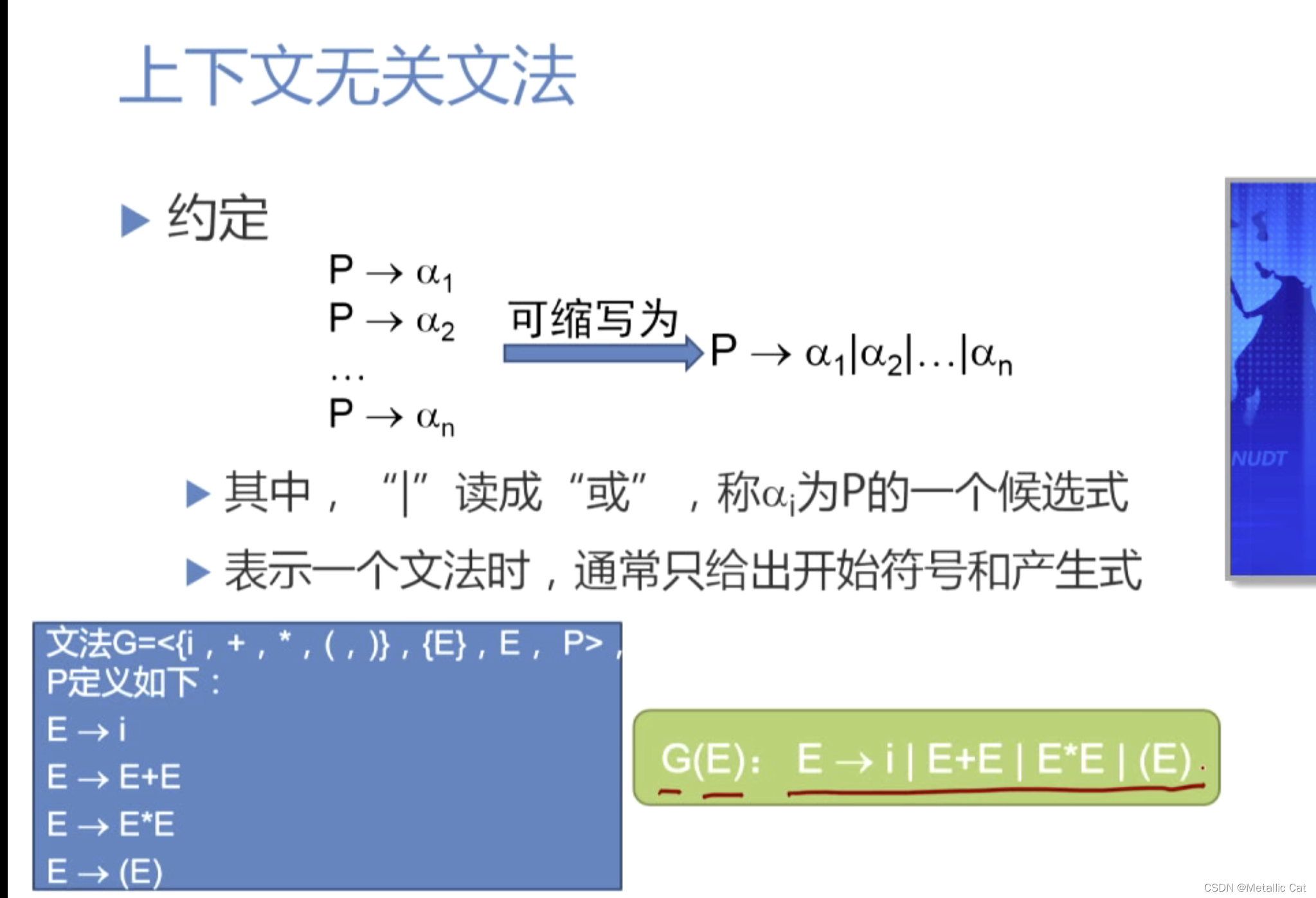 1.E代表的是我们传给文法的表达式,P则是文法的产生式集合