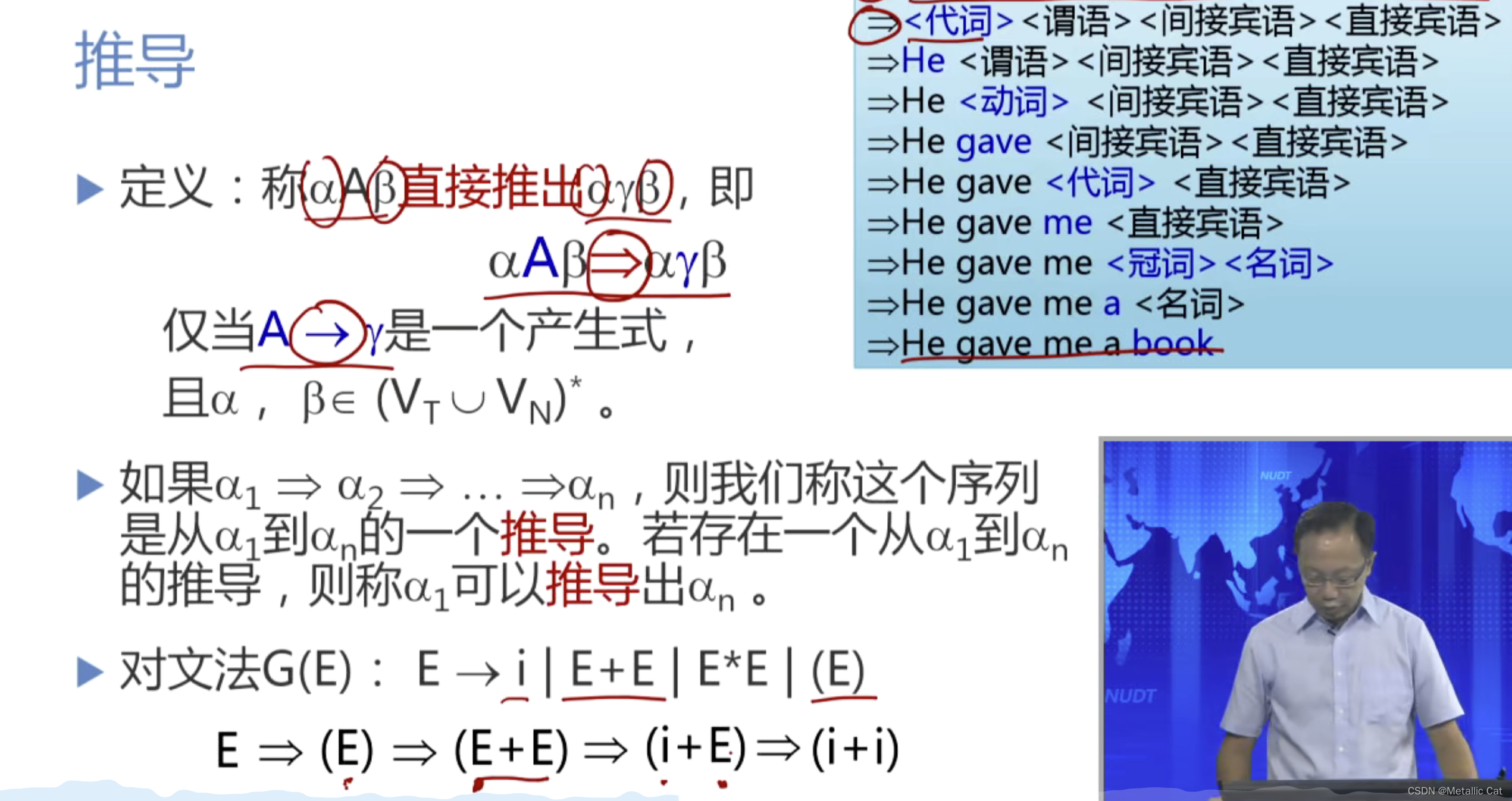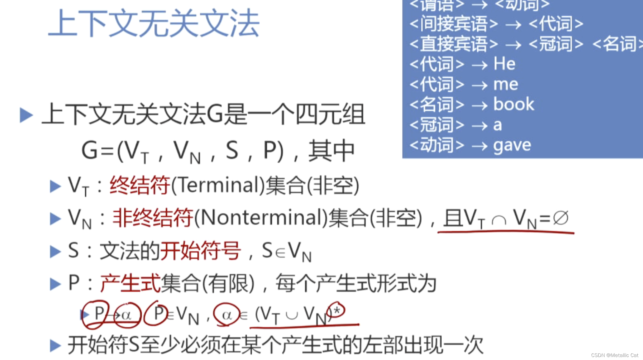 1.文法(蓝色部分)是描述句子语法结构的形式规则,在文法中包含了句子的语法结构,以及语法结构的每一部分是被句子的那个实际部分替换。