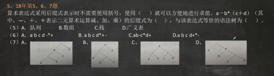 第二个空,a-b*(c+d)——》(a-(b*(c+d)))——》(a(b(cd)+)*)-——》abcd+*-