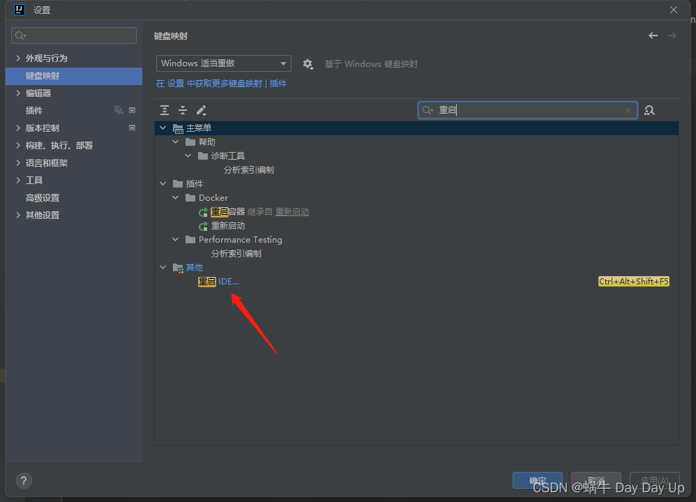 idea 2022 重启按钮目录1. 点击重启按钮2. 设置自定义重启快捷键点击重启按钮文件 -> 清除缓存点击后:设置自定义重启快捷键文件 -> 设置 -> 键盘映射按下快捷键后: 版权声明:本文为HECTOR_1368391900原创文章,遵循CC 4.0 BY-SA版权协议,转载请附上原文出处链接和本声明。原文链接:https://blog.csdn.net/HECTOR_1368391900/article/details/124765526