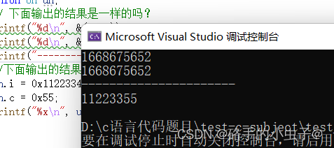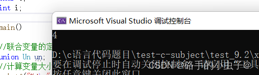 联合的成员是共用同一块内存空间的,这样一个联合变量的大小,至少是最大成员的大小,因为联合至少得有能力保存最大的那个成员。