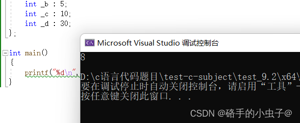 如图我们得到的结果是8,答案是不是出乎预料?那结果是如何得出的呢?那就要看下面的内存分配了。