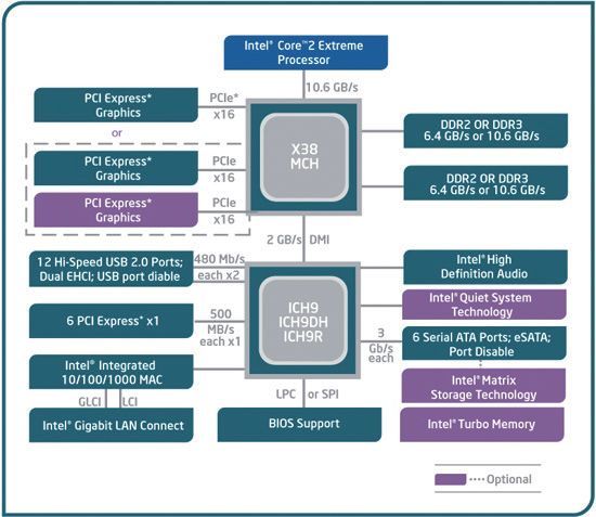 英特尔X38芯片组是第一个支持PCIe 2.0的产品