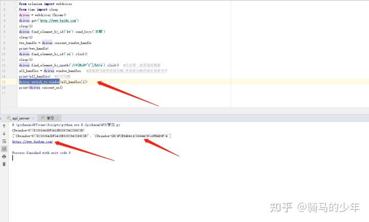 selenium提供了一个叫做switch_to_window来进行切换,不过在使用switch_to_window代码上会出现个横线,然后提示错误信息。这个是因为switch_to_window是老方法了,使用新方法switch_to.window()就可以了