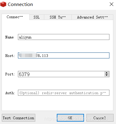 4、进入Redis Desktop Manager软件开始配置远程连接,host填写公网ip,Name随便写