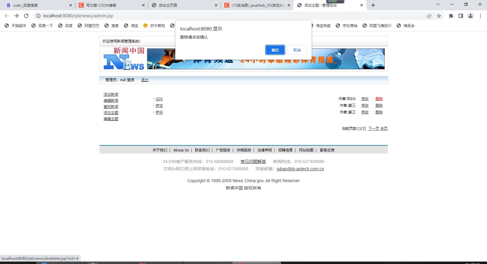 out.print("<script>alter('删除失败');location.href='admin'.jsp</script>");