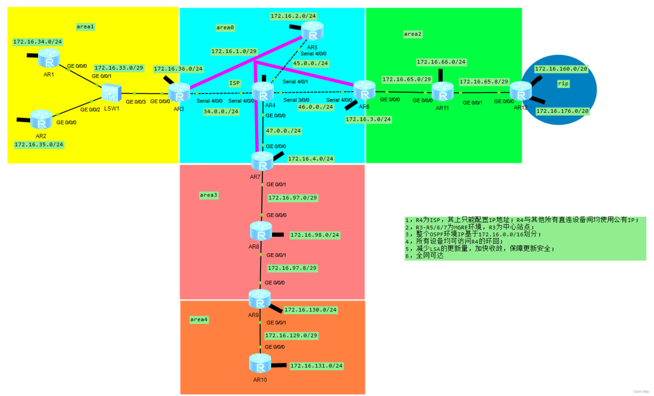 3,整个OSPF环境IP基于172.16.0.0/16划分;