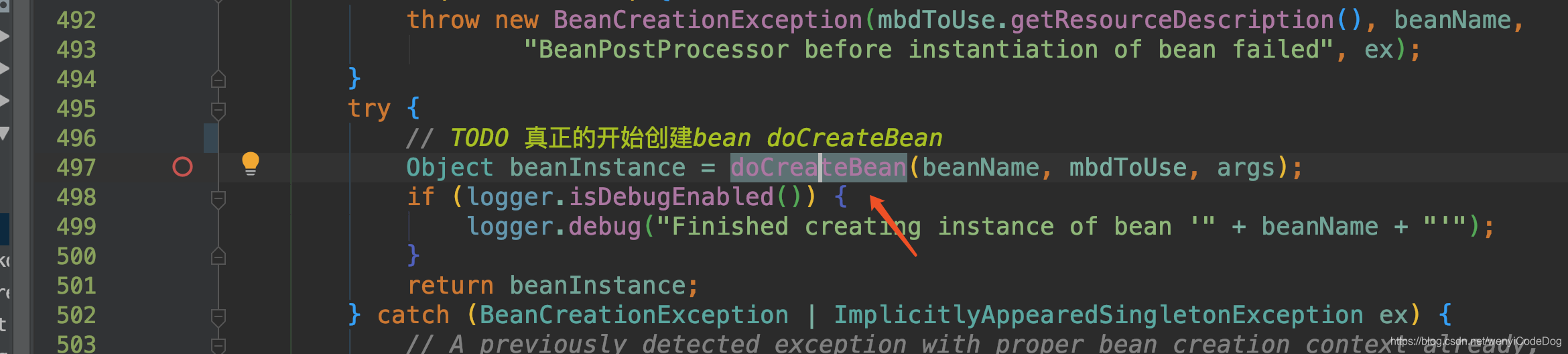 继续往里走,来到createBean的doCreateBean方法
