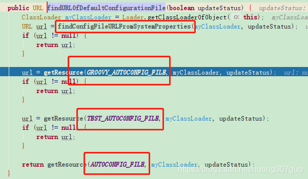 自动配置中的关键代码调用 findURLOfDefaultConfigurationFile方法去查找配置文件: