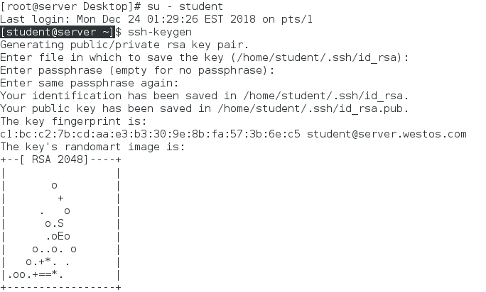 [student@server ~]$ ssh-copy-id -i ~/.ssh/id_dsa.pub 172.25.254.81 ####将公钥发送到172.25.254.81的student用户,不指明用户时默认按当前shell的用户