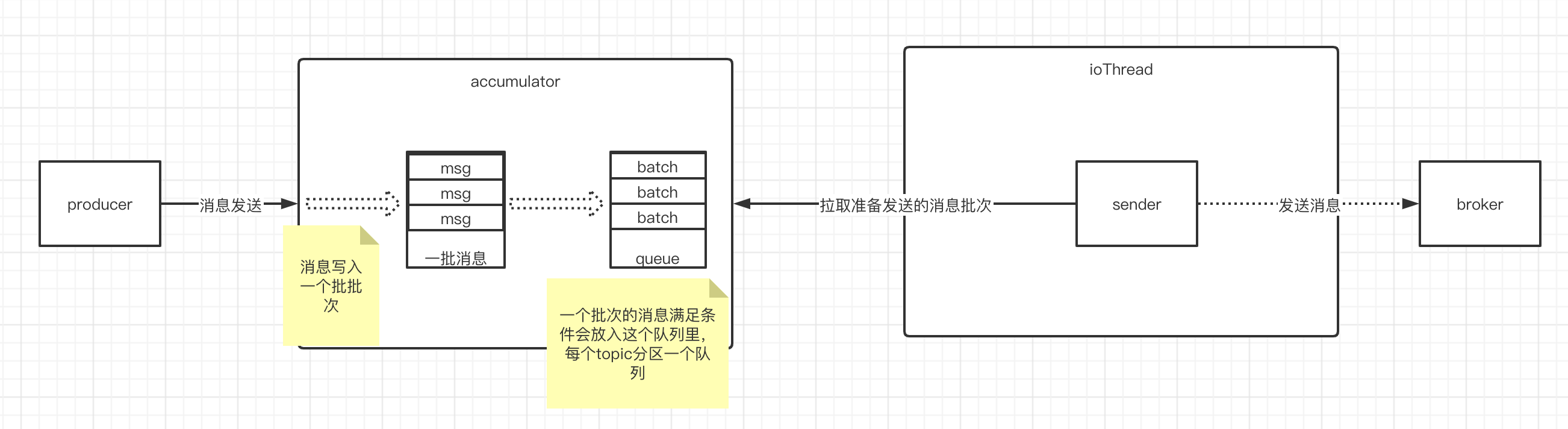 当produer调用send方法,发送消息的时候,只是先把消息缓存到一个队列,由该模式的消费者(另一个线程)来消费消息并执行真正的发送逻辑。这样主要是为了发送的时候尽量是批次的消息发送,而非单条单条消息的发送用来提升发送性能。