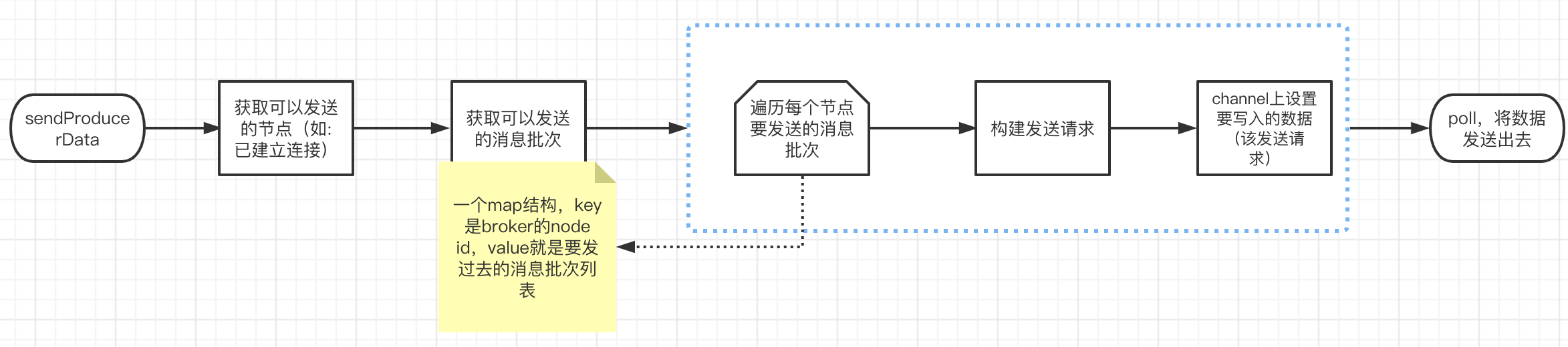- 调用sendProducerData方法只是把要发送的请求准备好,还未进行实际的网络传输