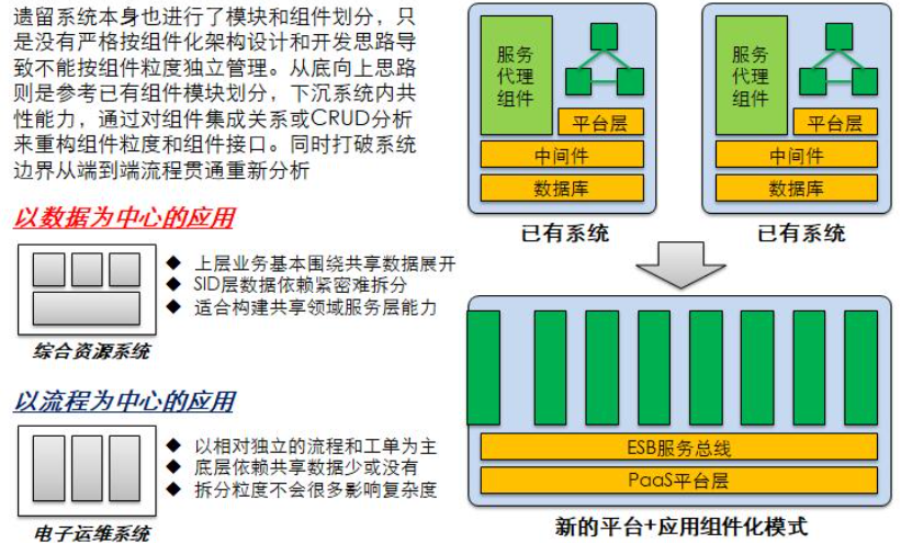注意这个实际和当前微服务谈的大的单体应用要拆分为更小的微服务是一个道理。在互联网电商架构里面经常看到用户中心,订单中心,库存中心,支付中心。这个映射回企业内部IT,不是已经拆分为了类似主数据平台,采购子系统,WMS子系统,报账子系统吗?所以并不是说原来IT系统构建的时候没有考虑拆分,而仅仅是拆分到哪个度的问题。
