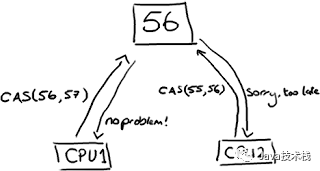 (上图通俗的解释是:CPU去更新一个值,但如果想改的值不再是原来的值,操作就失败,因为很明显,有其它操作先改变了这个值。)