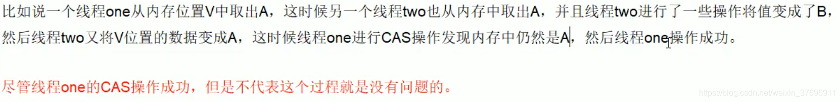 how to solve CAS 带来的ABA问题:原子类不用AtomicInteger或AtomicReference,而用AtomicStampedReference(值+版本号),在使用CAS更新时参数不再是两个(期望值,修改值),而是(期望值,修改值,期望版本号,修改版本号)