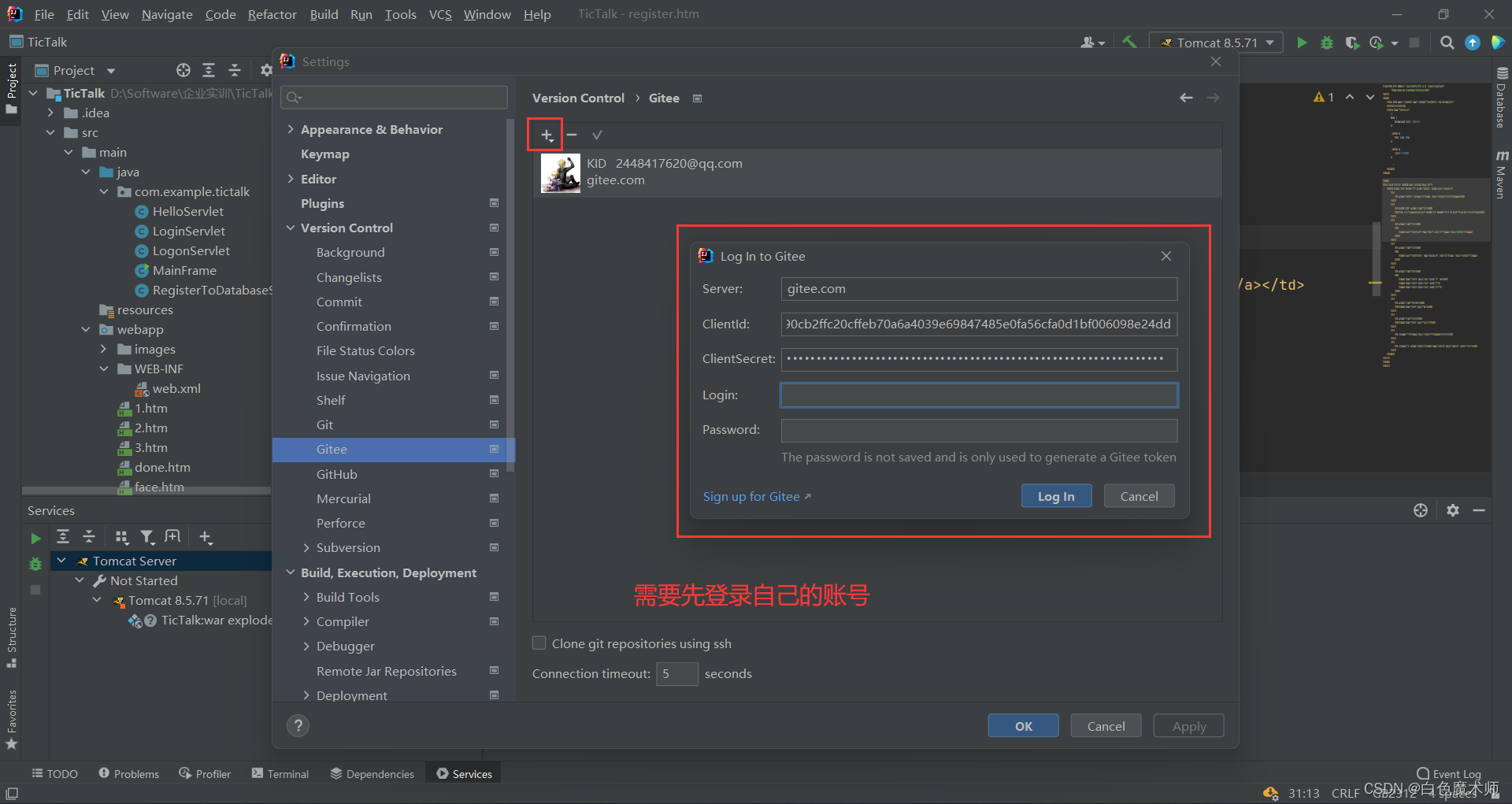 上传时需要我们登录Gitee,但是输入邮箱和密码后显示登录失败,而且我的Gitee插件是已经登录了我的Gitee账号的。