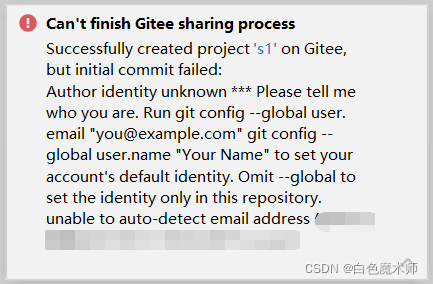上传时,提示你作者身份未知,请告诉我你是谁。这是因为Git没有设置自己的邮箱和用户名。