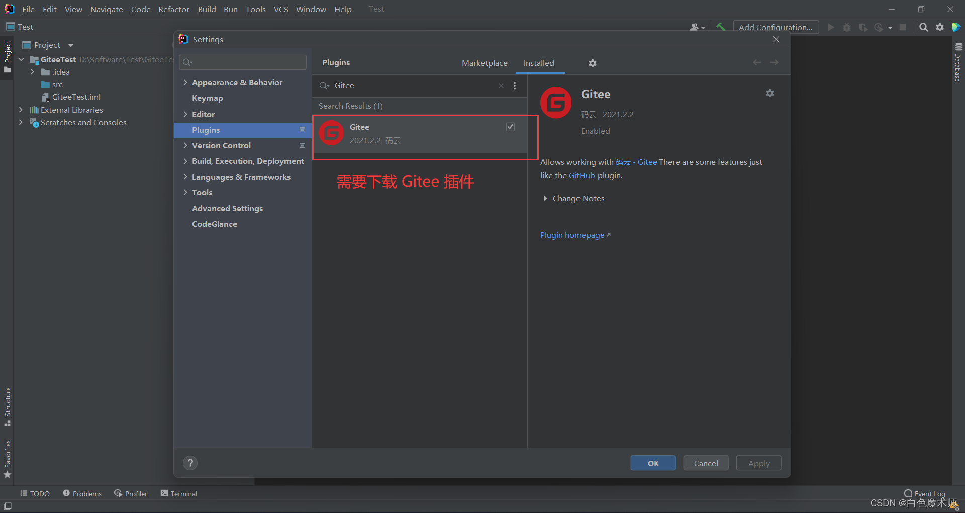 我们需要先在IDEA上安装Gitee插件。