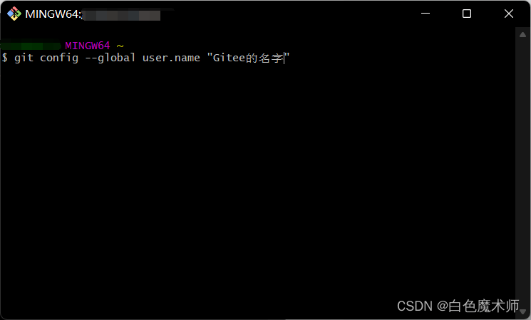 git config --global user.name “Gitee的名字”