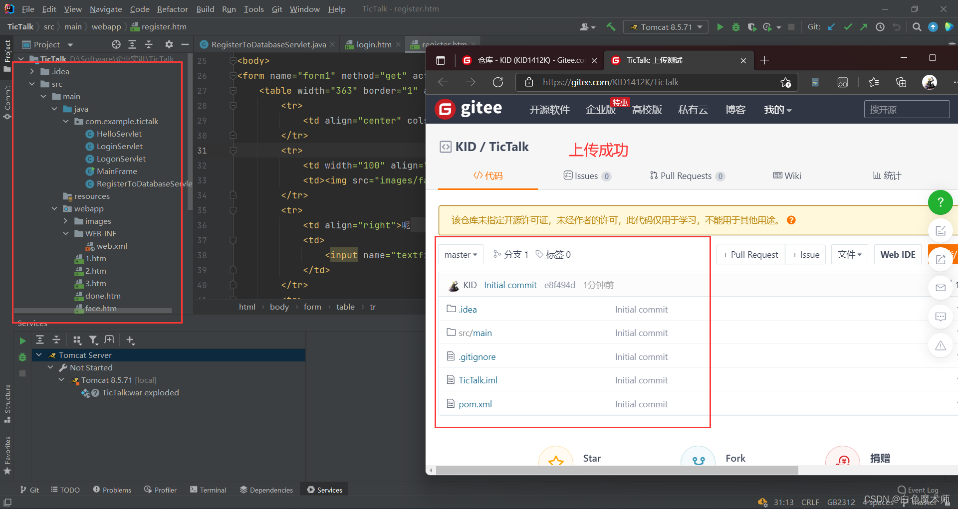 上传好后,就可以在Gitee平台上查看我们刚上传的项目了。