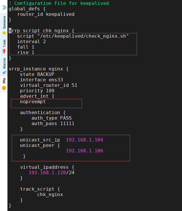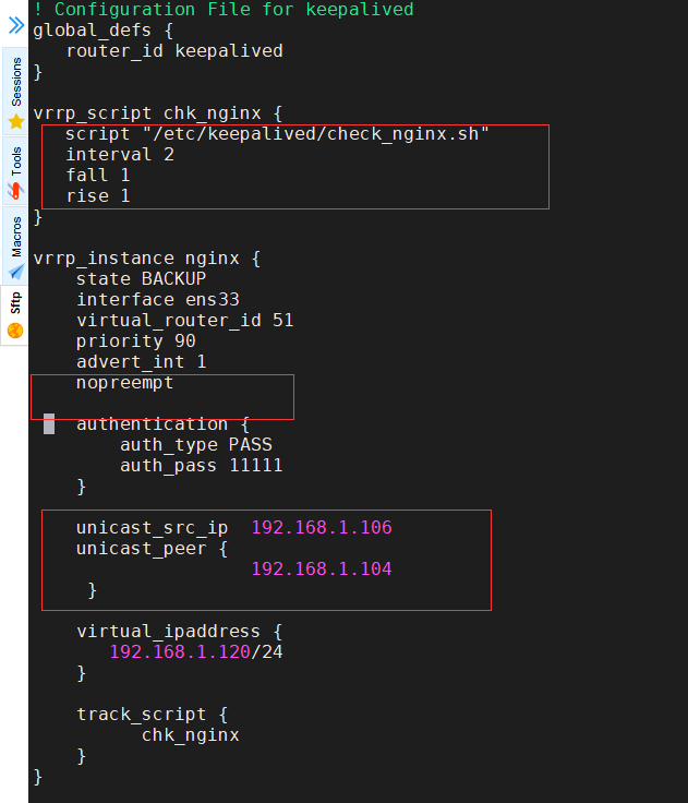 如果使用 非抢占模式,就不能通过优先级 priority 来判断谁应该是MASTER或者SLAVE,而应该根据检测脚本的返回值。