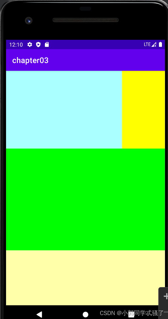 <!-- 水平方向的线性布局,两个子视图的颜色分别为青色和黄色 -->