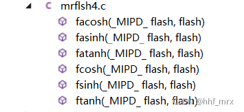 mrflsh4.c的总体结构如下,,主要实现了facosh()、fasinh()、fatanh()、fcosh()、fsinh()、ftanh()几个在miracl开源库中比较重要的函数,这一次的博客就是读一下这函数的功能。
