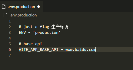 // dotenv 需要单独npm install export default ({ mode }) => { require('dotenv').config({ path: `./.env.${mode}` }); // now you can access config with process.env.{configName} return defineConfig({ plugins: [vue()], base:process.env.VITE_APP_NAME }) }import { loadEnv } from 'vite' export default ({ mode }) => { return defineConfig({ plugins: [vue()], base:loadEnv(mode, process.cwd()).VITE_APP_NAME }) }
