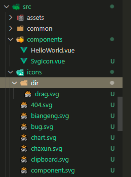 在src目录新建 icons文件夹 导入svg 例: