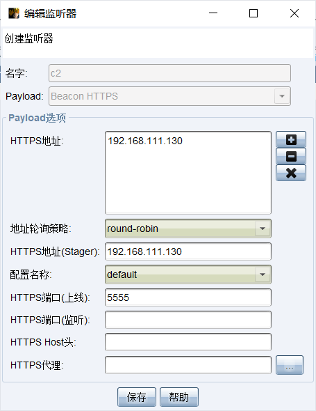 CS客户端开启监听(这里注意要用HTTPS协议)