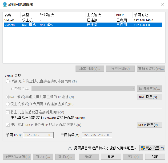 参考虚拟机网络配置,添加新的网络,该网络作为内部网络。
