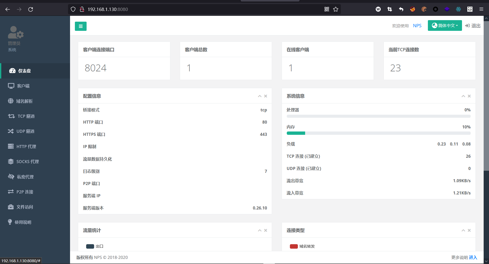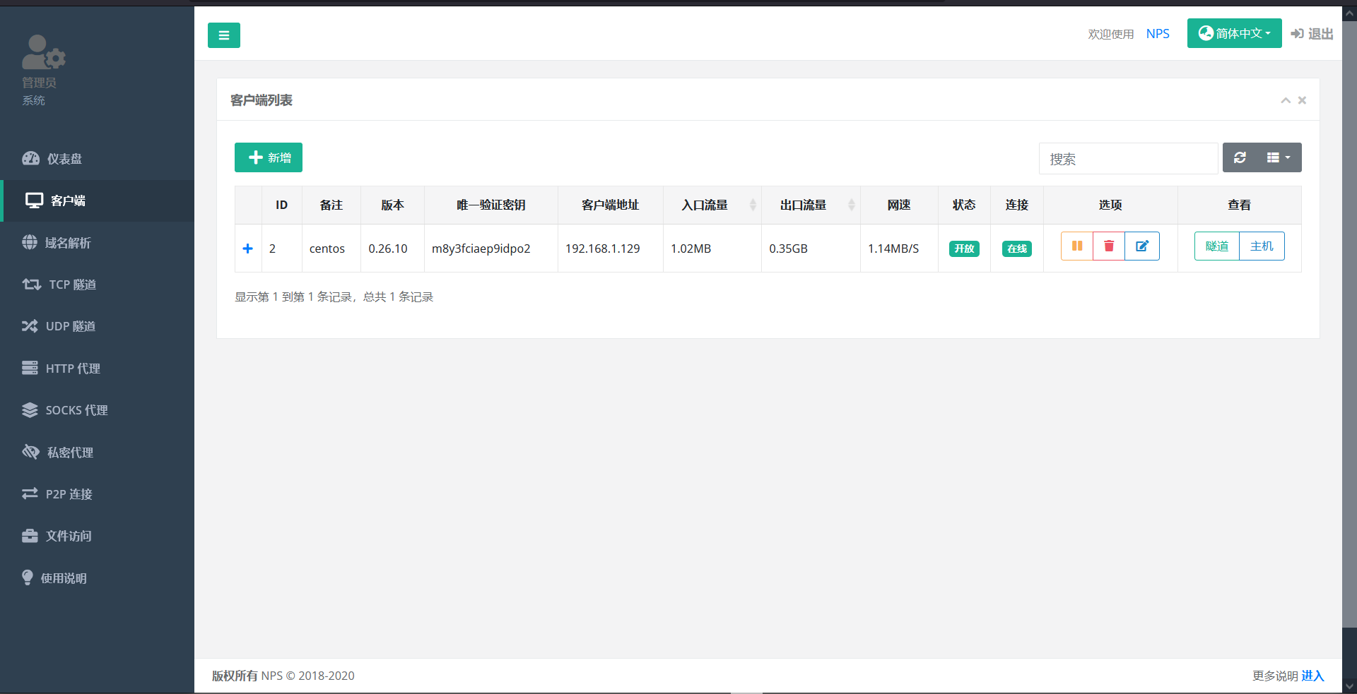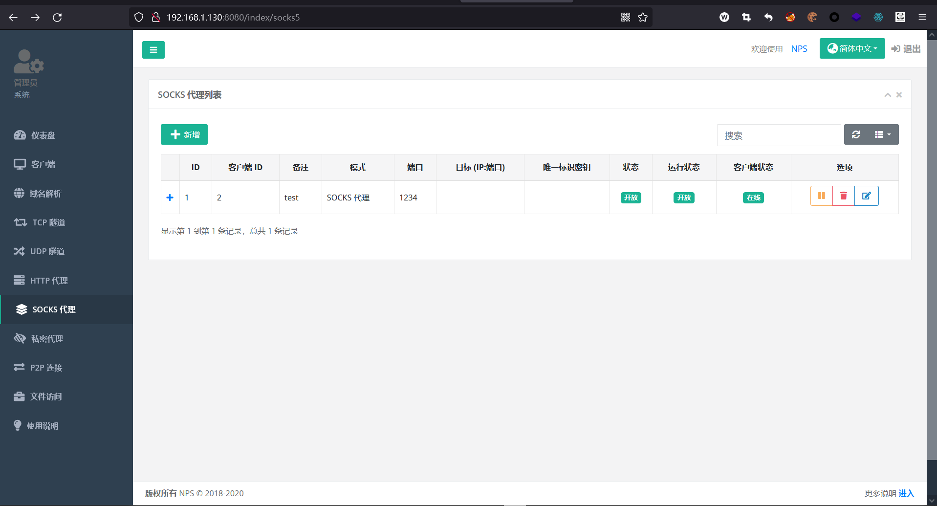 nps start访问该服务端的IP:8080端口