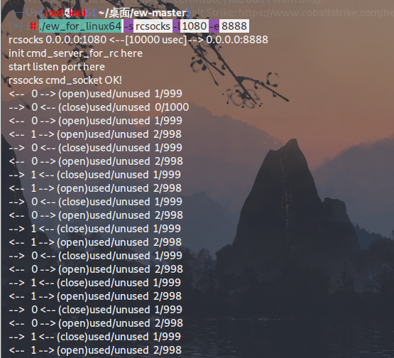 ./ew_for_linux64 -s rcsocks -l 1080 -e 8888