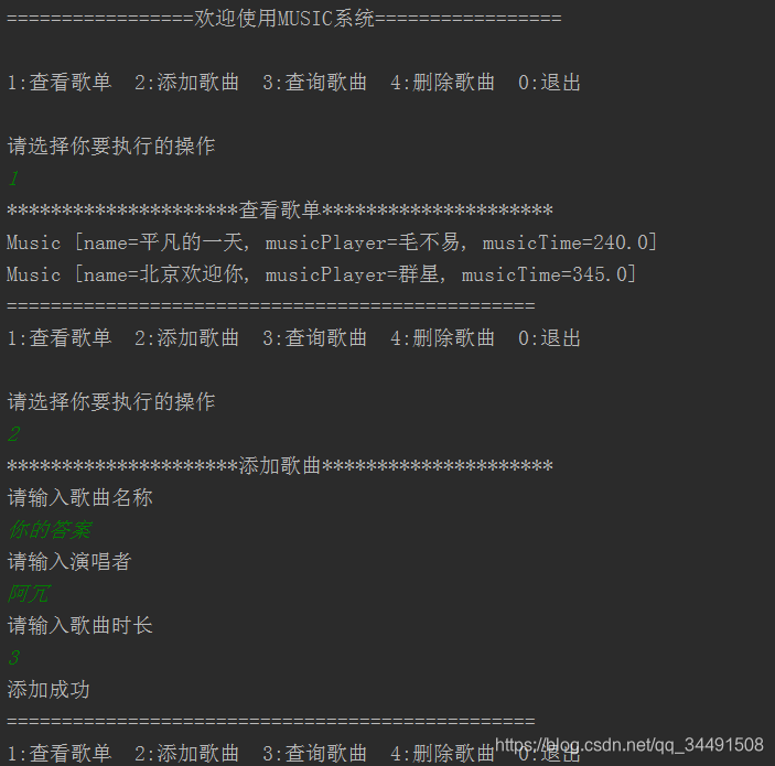 *功能:查看歌单 查询歌曲 删除歌曲 添加歌曲