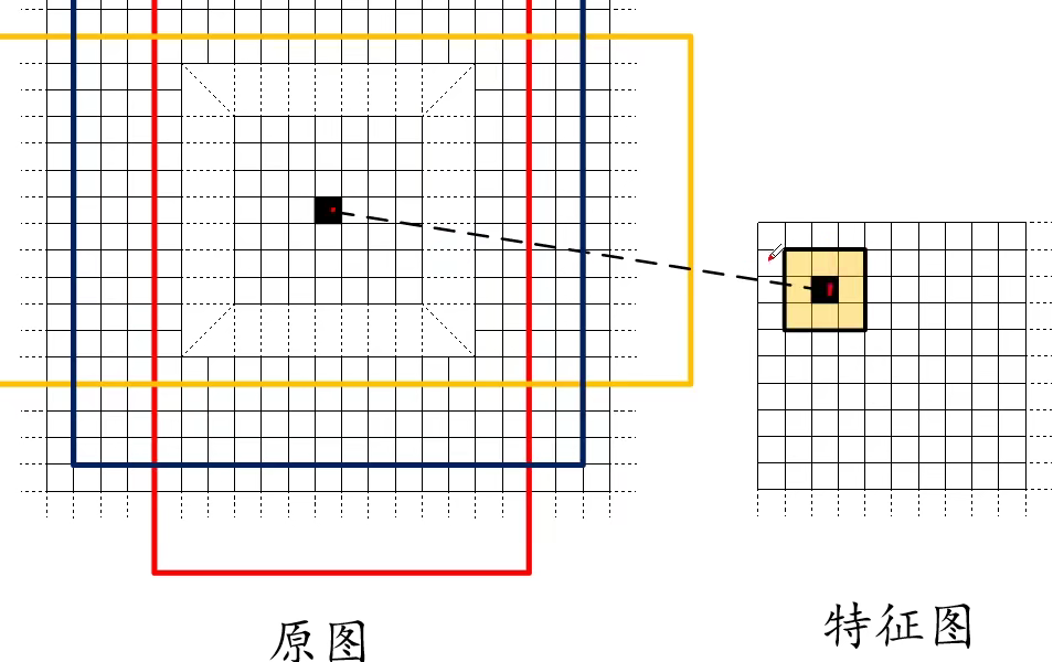 特征图黑点位置对应原图的位置:x:步距*3,y:步距*3