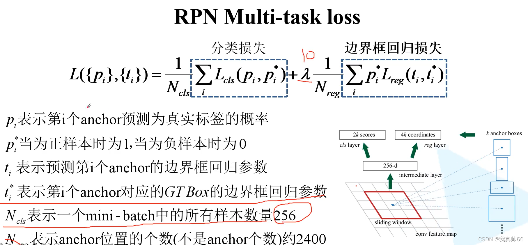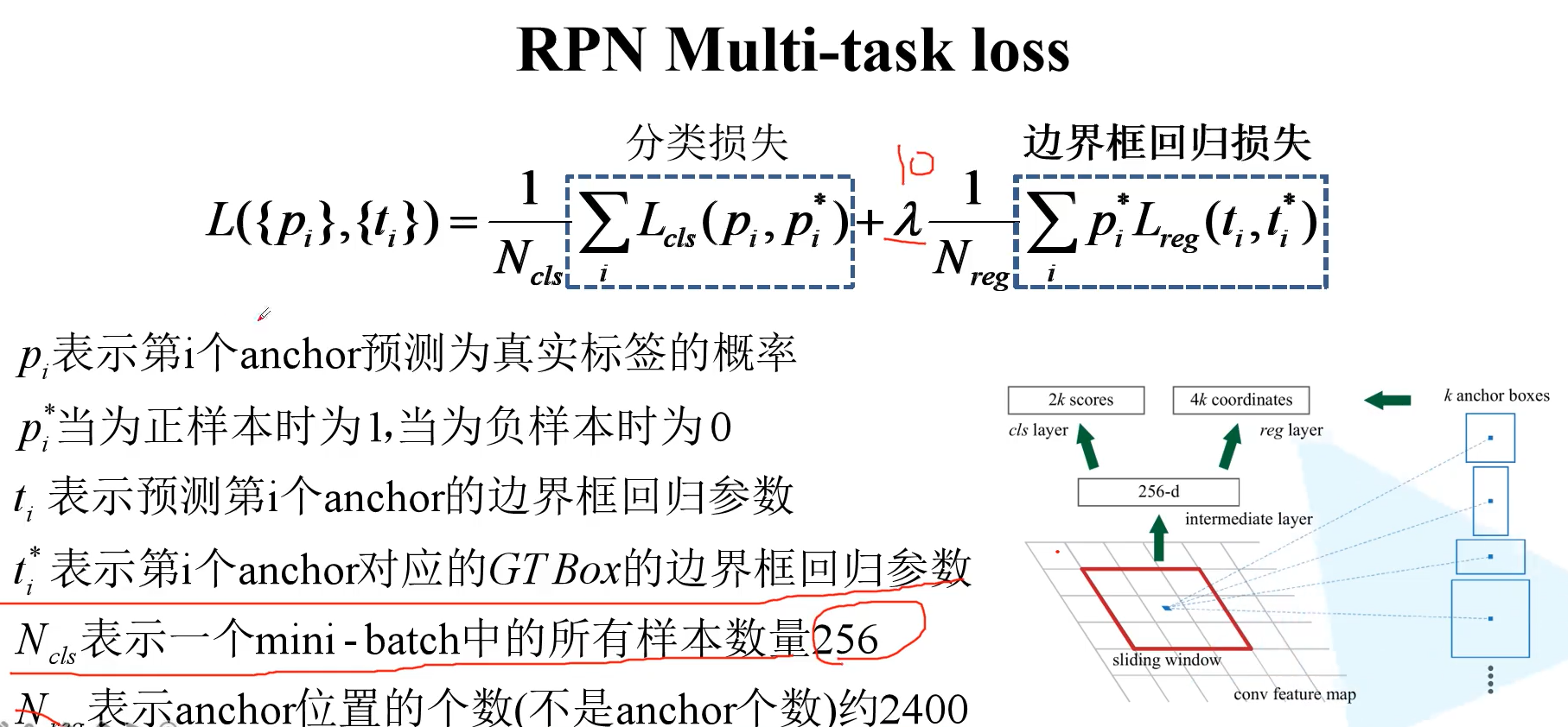 2400(60*40),lambda是平衡参数,256最终抽取候选框个数