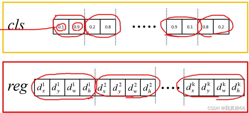 cls :0.1:为背景概率,0.9为前景概率,每两个表示一个box,这里不进行分类