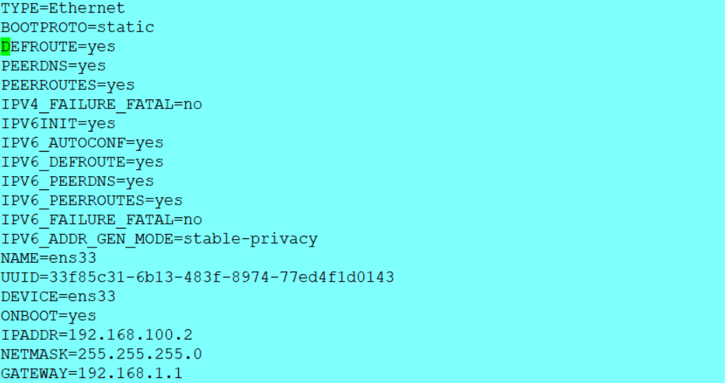 GATEWAY =192.168.100.1 GATEWAY 表示网关,后加网关即可