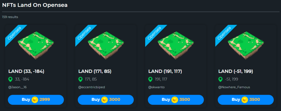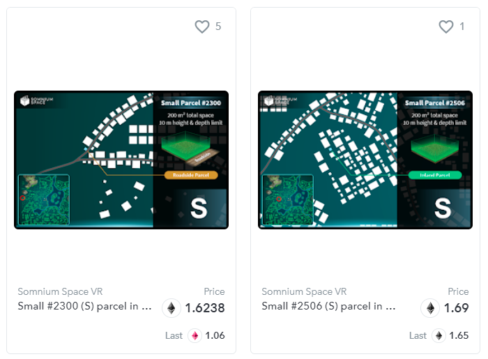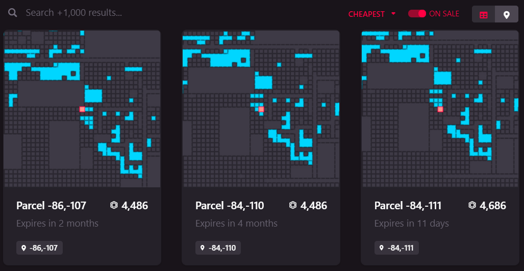 你可以做的是为上面提到的4个项目设置一个自定义搜索,即Cryptovoxels、 Decentraland、 Somnium Space以及The Sandbox,然后按“从低到高”对价格进行排序。你首先必须滚动浏览一些资产,这样你可以通过一个单一的界面浏览一切。或者,你可以访问这些项目的网站,查看它们各自的专用市场。