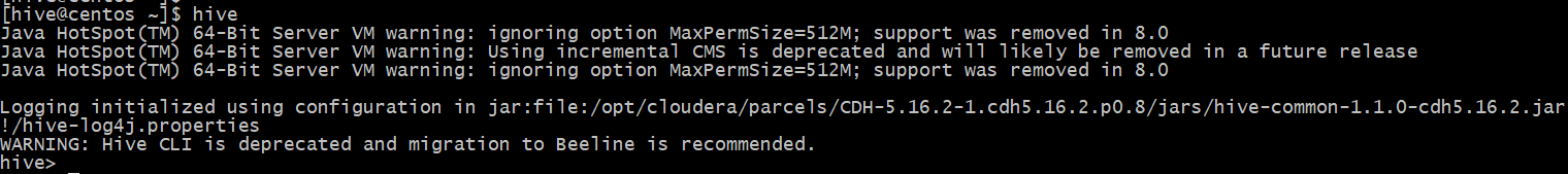 在hive1.1.0中使用Hive CLI会提示WARNING: Hive CLI is deprecated and migration to Beeline is recommended.