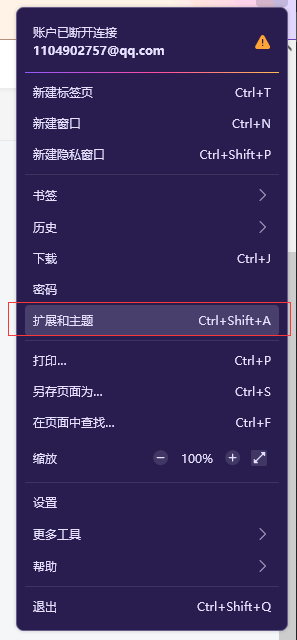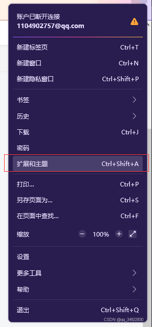 设置中选择扩展和主题