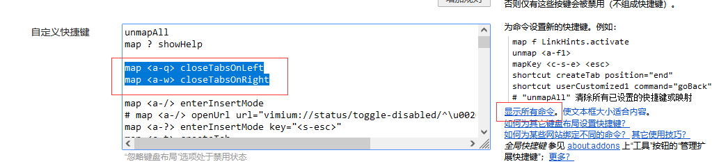 我设置的ALT+Q 关闭左侧标签页,ALT+W关闭右侧标签页