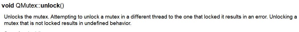 2、void QMutex::unlock():释放锁,同一把锁的获取lock()和释放unlock()必须成对出现